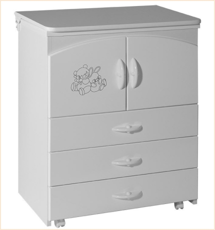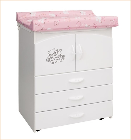 Komode za bebe sa pultom za previjanje predstavljaju specijalan deo bebi opreme. Dizajnirane su tako da roditelji lako i bezbedno mogu previti svoju bebu. Ispod pulta za previjanje nalaze se praktične fioke koje možete iskoristiti za odlaganje pelena, kremica i svog ostalog pribora za negu deteta. Po želji poklopac komode može biti fiksiran ili se može otvarati.